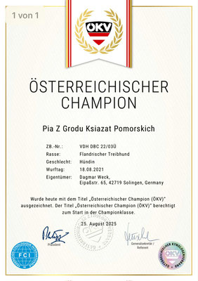 Pia hat den Titel "Champion Österreich" fertig gemacht, hier hatte ihr nur noch 1 Punkt gefehlt.