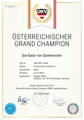 Qai-Qatar von Quintenstein, Championklasse: V1, CAC, CACIB, bester Rüde, Alpensieger, BOS